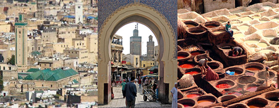 En route pour Meknès, la fameuse capitale du sultan Moulay Ismail avec ses écuries royales, son quartier juif et Bab Mansour. Le site antique romain de Volubilis est situé à seulement une trentaine de kilomètres. Enfin, petit trajet pour atteindre Fès.